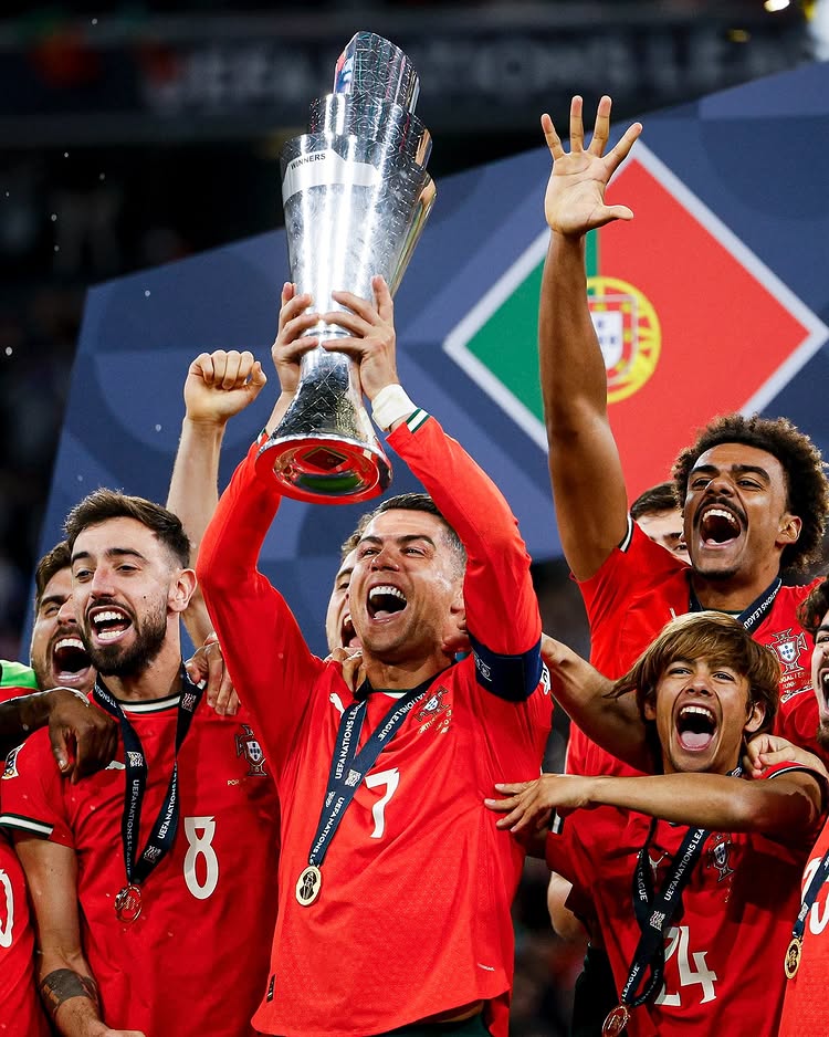 Final UEFA Nations League 2025 mempertemukan Portugal melawan Spanyol di Allianz Arena, Senin (9/6/2025) dini hari WIB. Spanyol unggul lebih dulu melalui gol Martin Zubimendi dan Mikel Oyarzabal di babak pertama, namun Nuno Mendes membalas untuk Portugal, menutup babak pertama dengan skor 2-1. Di babak kedua, Ronaldo menyamakan kedudukan dengan golnya pada menit ke-67, memaksa pertandingan berlanjut ke perpanjangan waktu. Skor 2-2 bertahan hingga akhir, dan adu penalti menjadi penentu. Kegagalan Alvaro Morata mengeksekusi penalti memastikan kemenangan Portugal 5-3, mengantarkan gelar kedua mereka di kompetisi ini setelah 2019. Ronaldo, yang ditarik keluar pada menit ke-88 karena cedera ringan, menangis haru saat trofi diangkat.